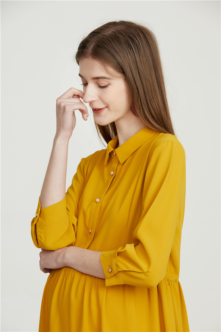 Pregnant women work to work in spring and autumn shirt dress 2022 new large size pregnant women spring snow dress mid - long edition