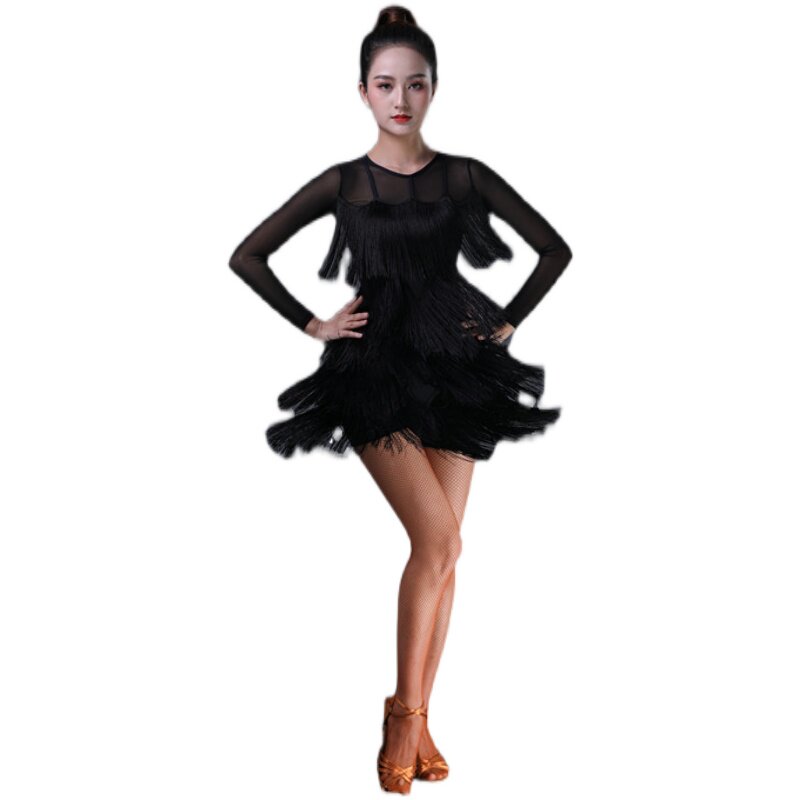 Latin Dance Suit Women Rehearsal For New Training Dance Sexy Foreign Dress Professional Suit Multilayer Streaming Sume Out