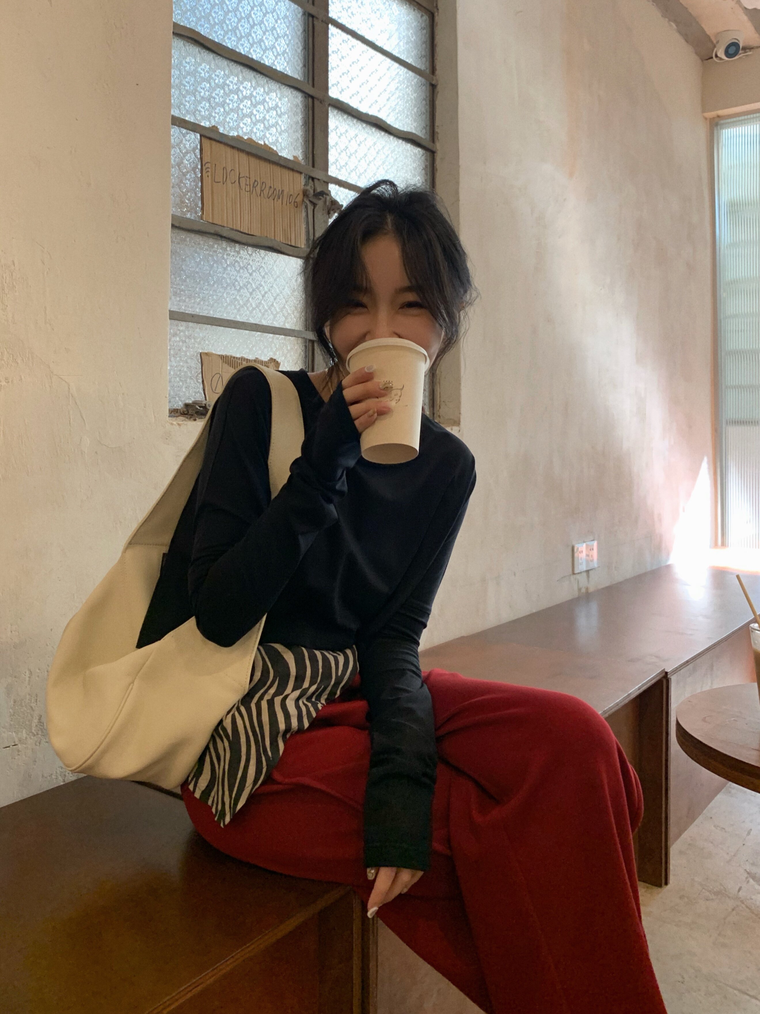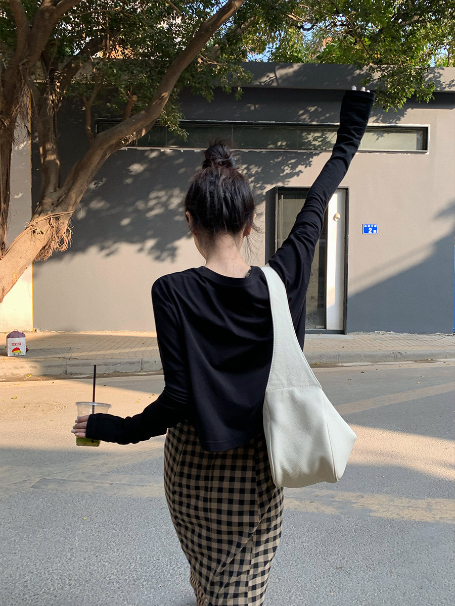 Ren Xiaoyi Lit e mode long-sleeved t-shirt women's ins tide retro short top design sense bottoming shirt foreign style