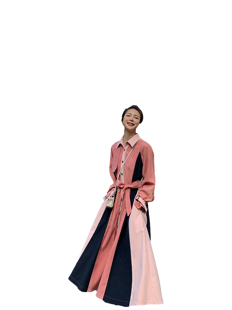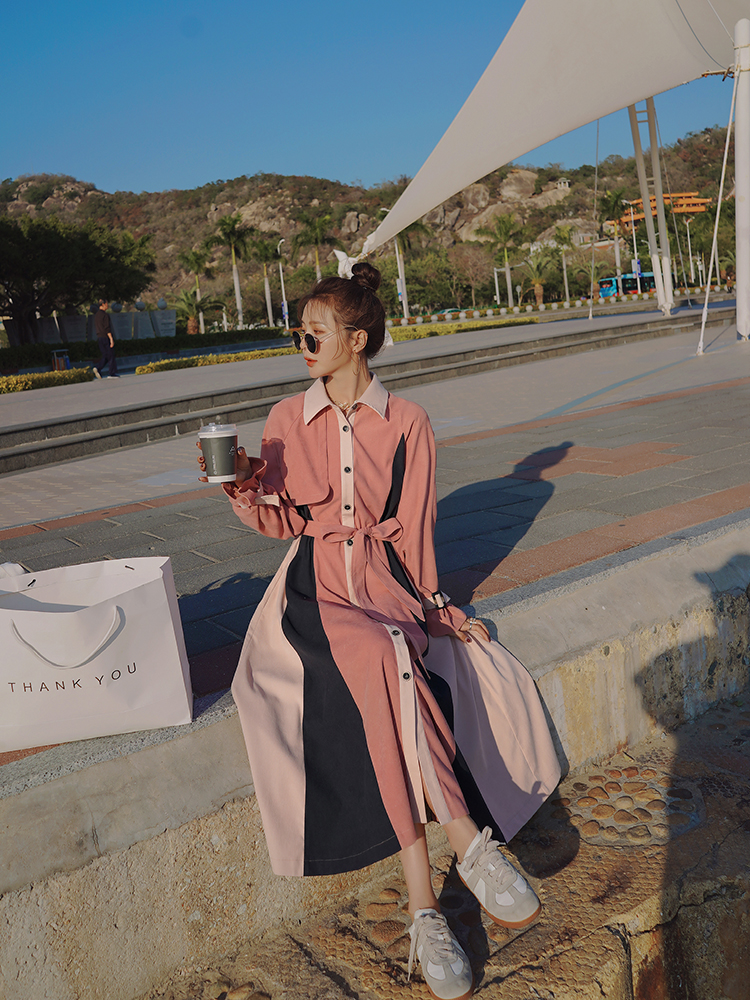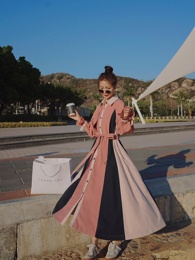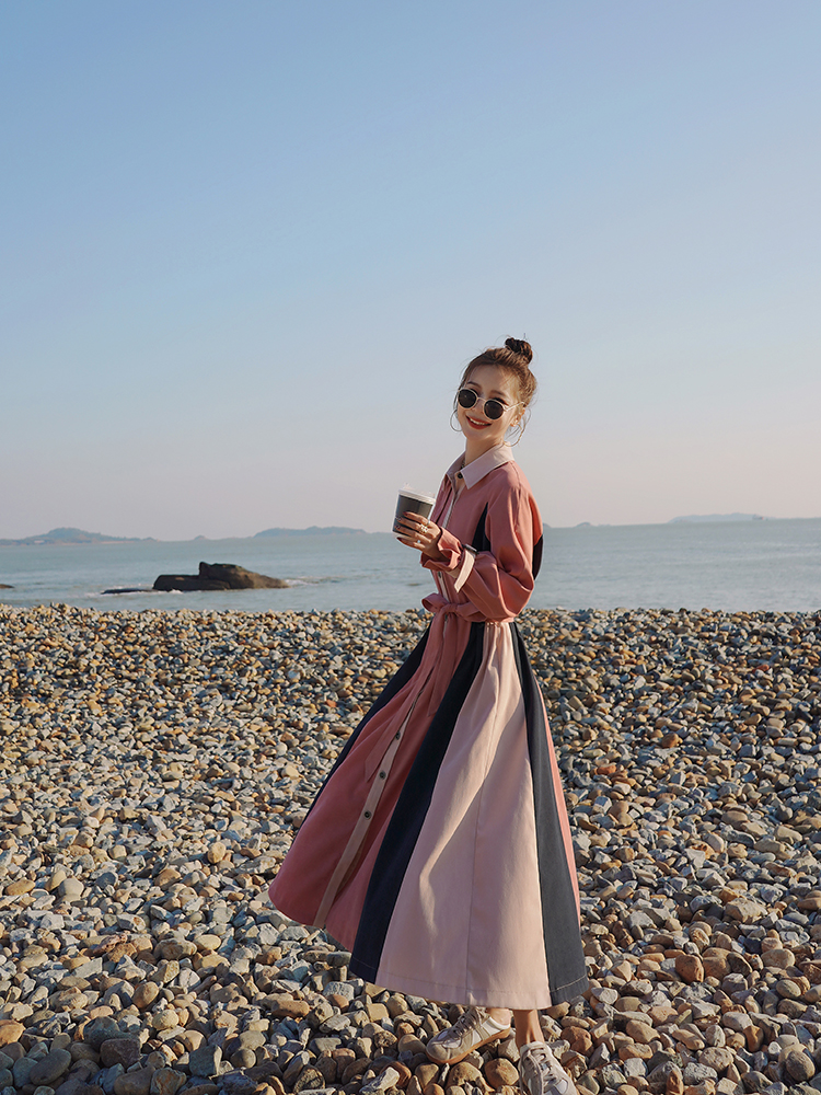 Lecea Alice long-sleeved dress 2022 summer new temperament contrast color shirt skirt women's design sense is small