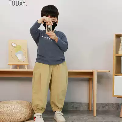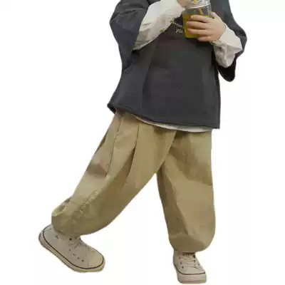 Boys pants 2021 Spring and Autumn new children's clothing children's loose casual pure color cotton corset pants foreign style Japanese style Japanese