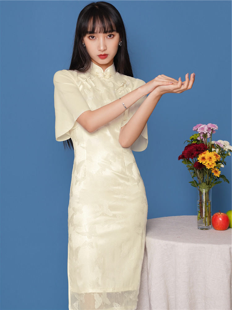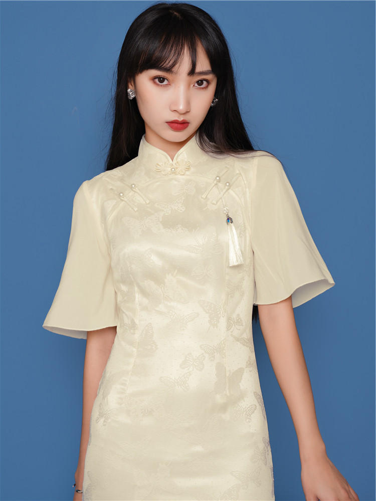 Law-style niche qipao women's long version of retro temperament improved version of the young girl's young girl first love sweet and beautiful