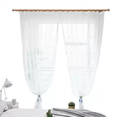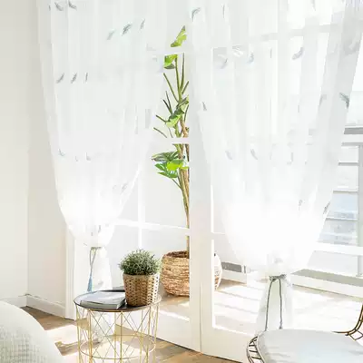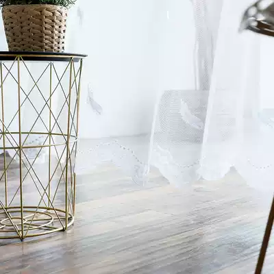 Punch-free installation of white yarn curtain bay window living room balcony partition yarn shading translucent impermeable embroidery yarn curtain curtains