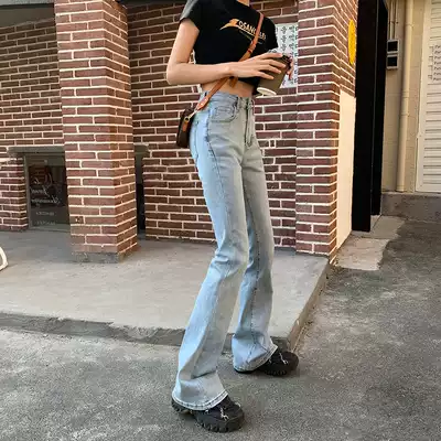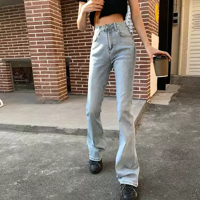 High-waisted jeans women's light-colored micro-horn straight tube thin spring dress 2021 New drop feeling mop trumpet pants