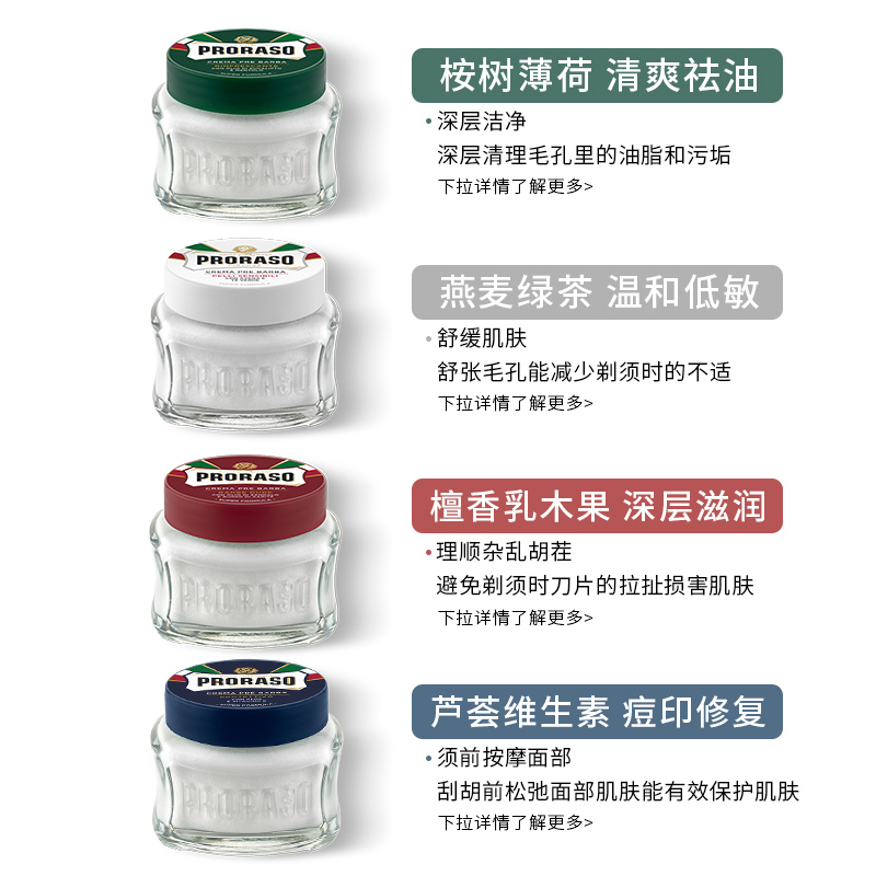 Italian Proraso Palazo Sandalwood Massage Cream Shaving Front Cream Softened Beard Face Cream Wash Face Cream 100ml