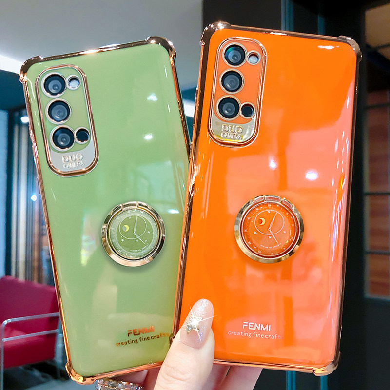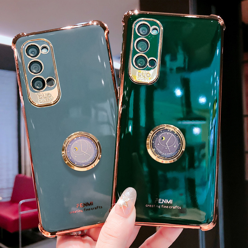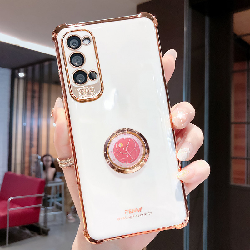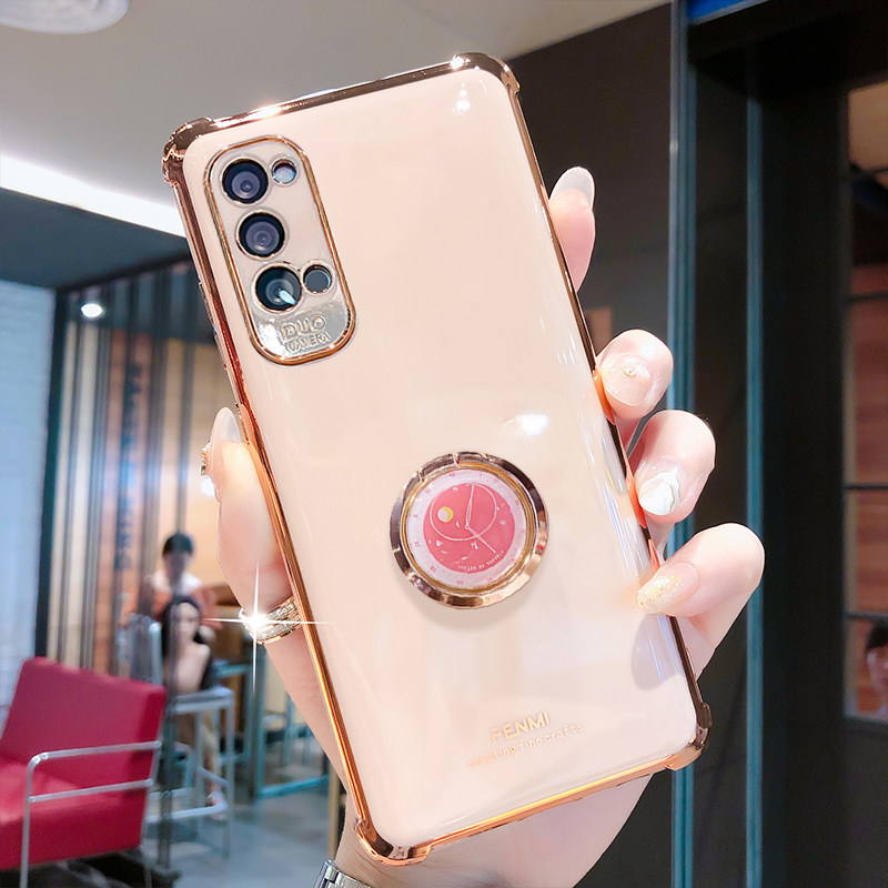 oppo with clock stent mobile phone protective shell reno5pro lens all pack silicone anti-wreck mobile phone accessories electroplating transmission protection shell