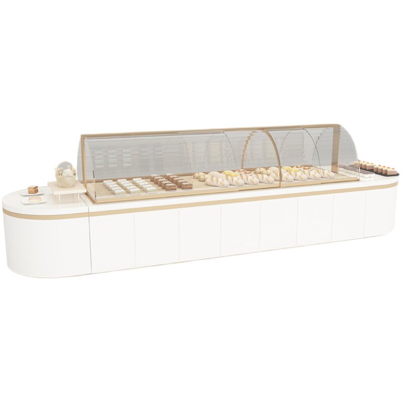 Iron bakery cabinet bread side cabinet cake model cabinet dining tray cabinet titanium-plated push-pull solid wood ash middle island cabinet