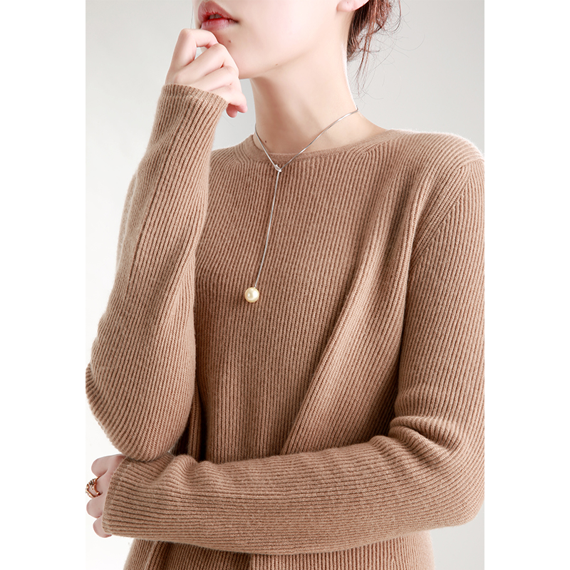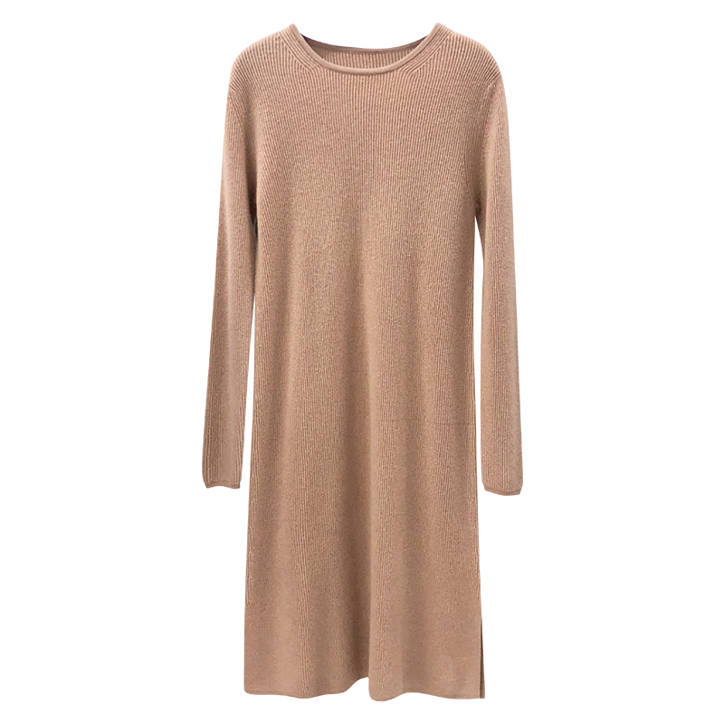 NZ full wool casual all-match camel over-the-knee mid-length round neck pullover sweater women's knitted bottoming shirt autumn and winter
