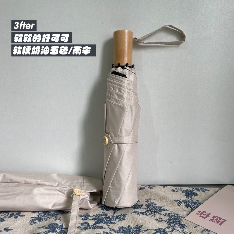 3fter soft waxy soft waxy ~ maple handle sunny umbrella Japanese folding portable small fresh solid color umbrella for men and women