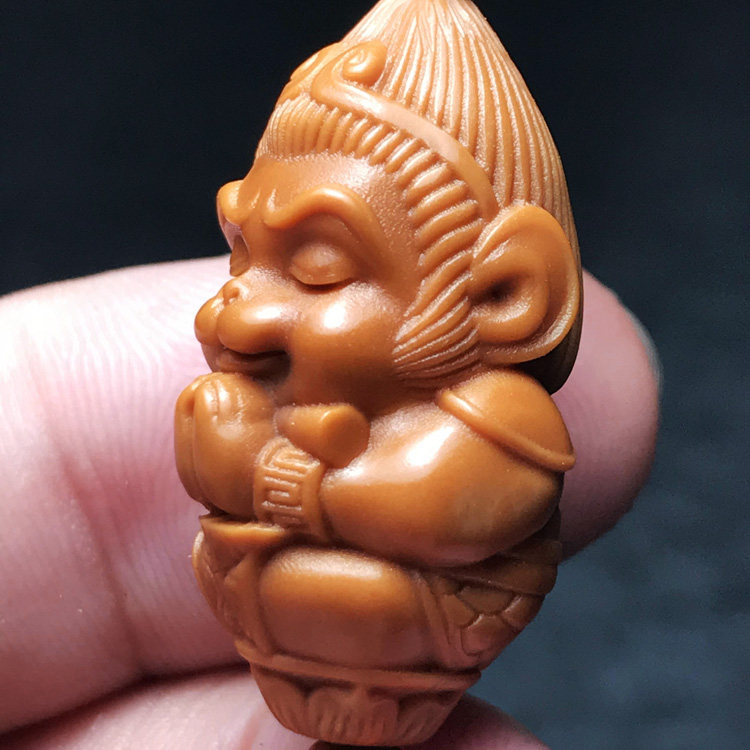 Qitian Grand St. Little Sun Wuqi monkey Buddha head non-tee olive Nuclear Hu Hand-carved Single Seed Nuclear Pendant Back Cloud