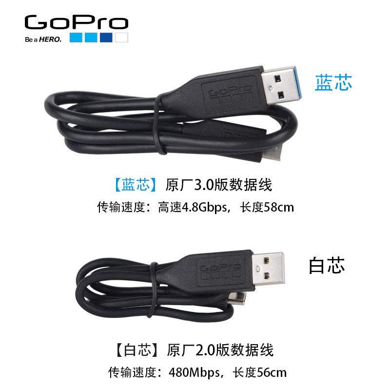 GoPro original blue core 3 version 0 data cable GoPro original white core 2 version 0 data cable (extended version) sub-factory 1m data cable sub-factory 2A fast charging charging head