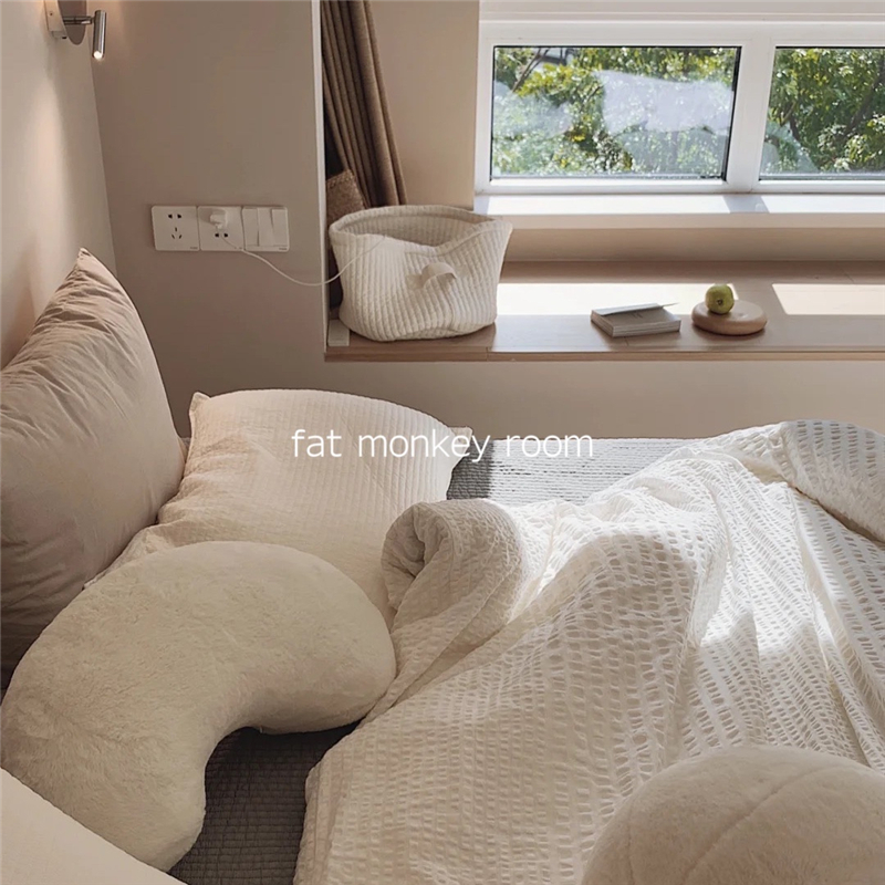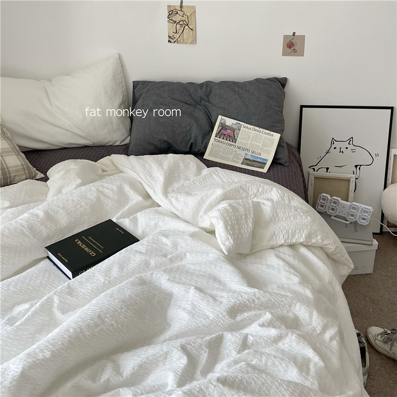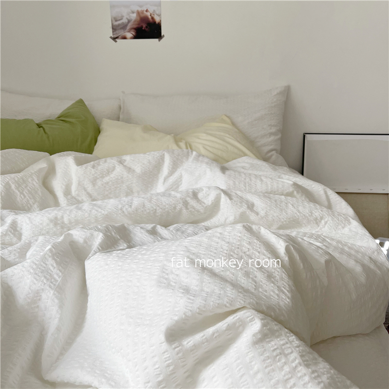 Female ji same style seersucker quilt cover single product INS Japanese simple cotton seersucker solid color single double quilt cover