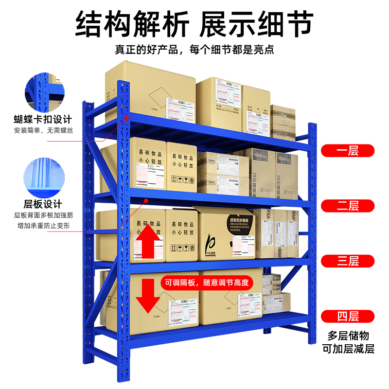 Warehouse storage shelves display shelves Home multi-functional thickened shelves Warehouse multi-layer heavy goods iron shelves