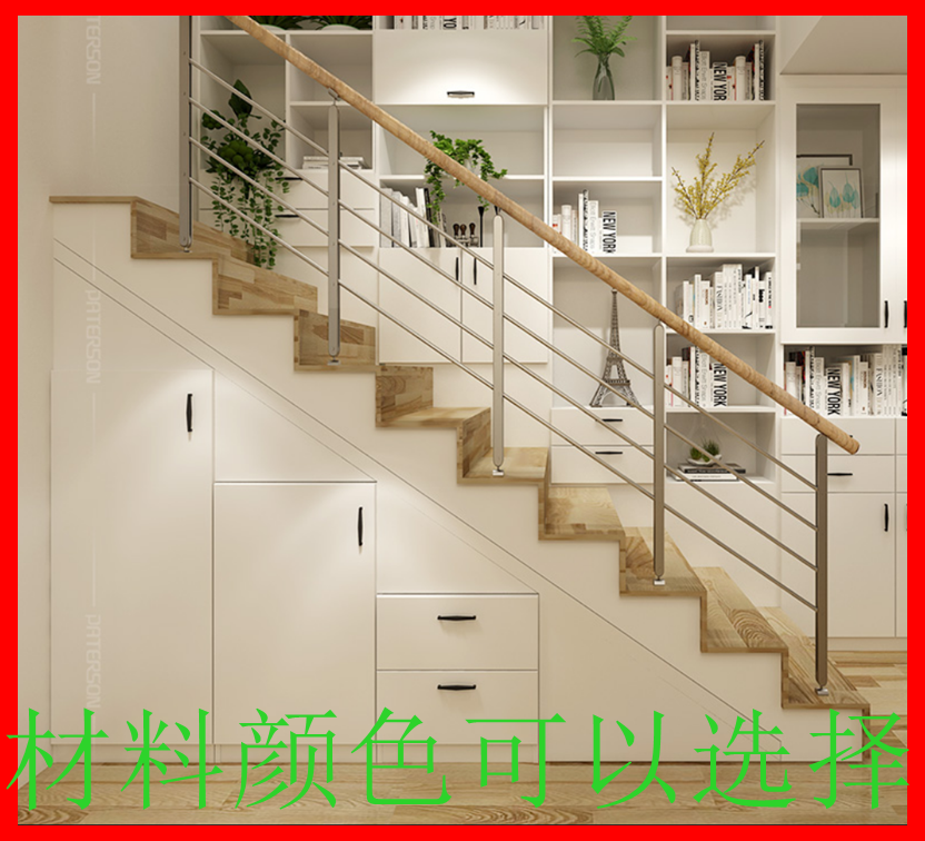 Full house Custom solid wood Staircase Cabinet Strides Overall Combined Into Wall Cabinet Bookmaking Containing Cabinet Duplex Building Shenzhen Hong Kong