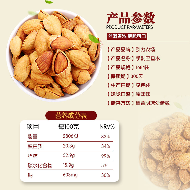Gravity Farm hand-peeled Badan wood nuts Baked salt bagged almonds Original almond kernels Dried fruit snacks fried goods