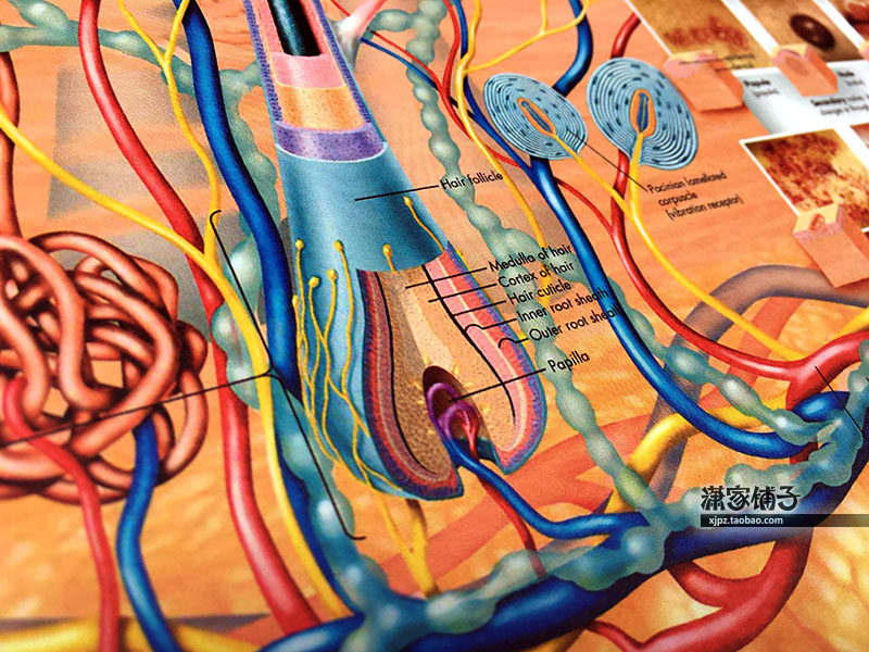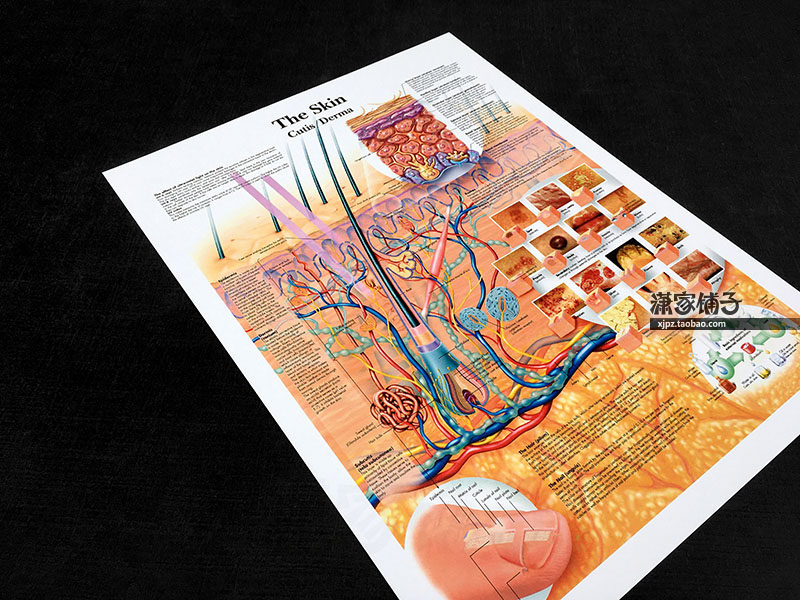 Human skin anatomy structure diagram section diagram scientific atlas wall chart poster decorative painting
