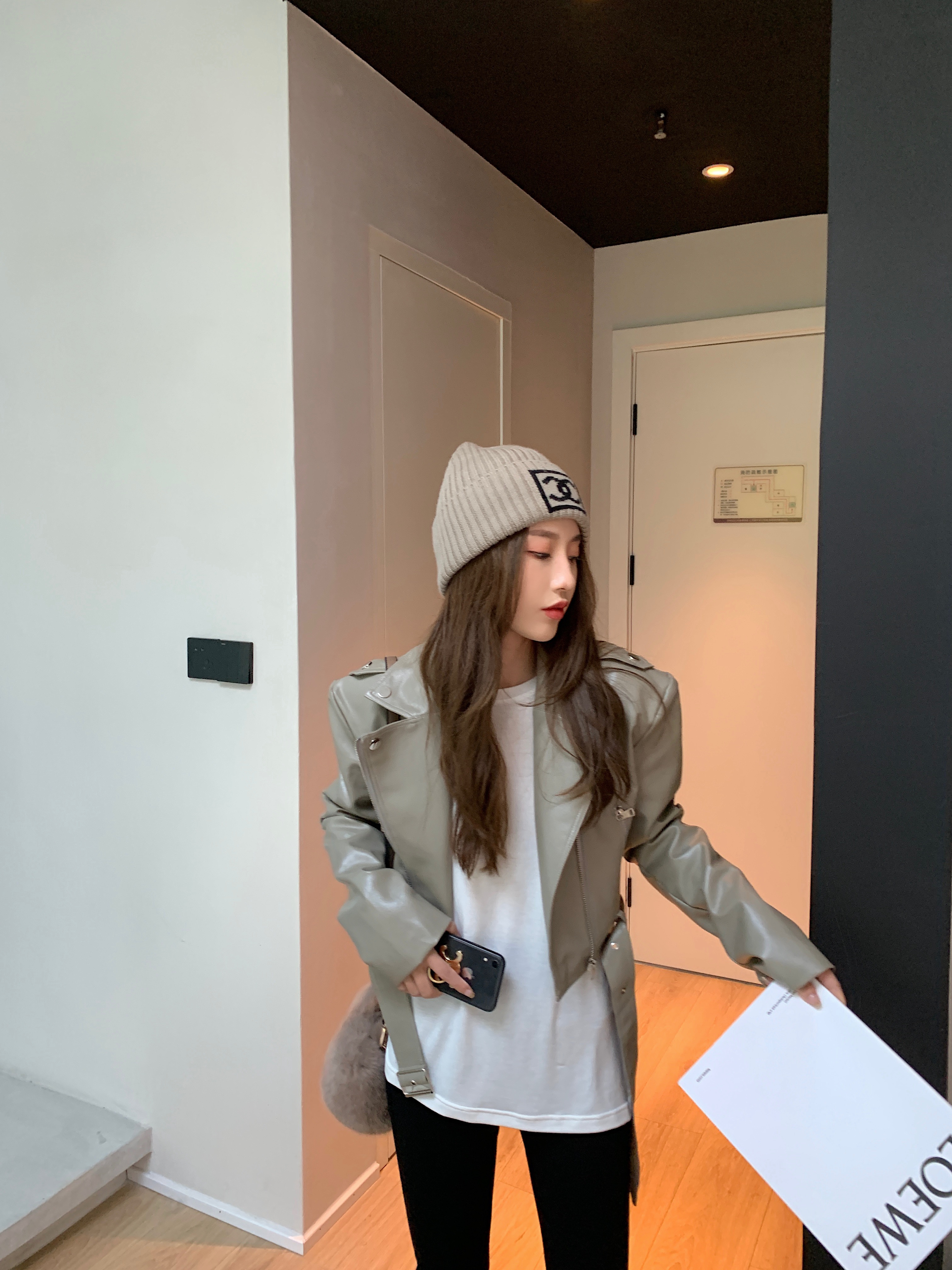 MLS Short Leather Clothes 2022 New Lady Spring and Autumn Locomotive Jacket Fashion Pu Leather Cover Casual Coat