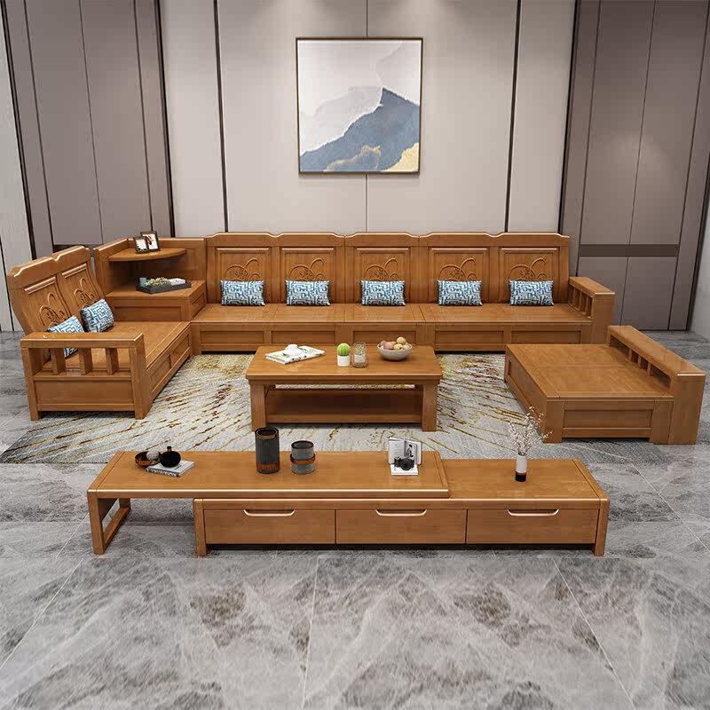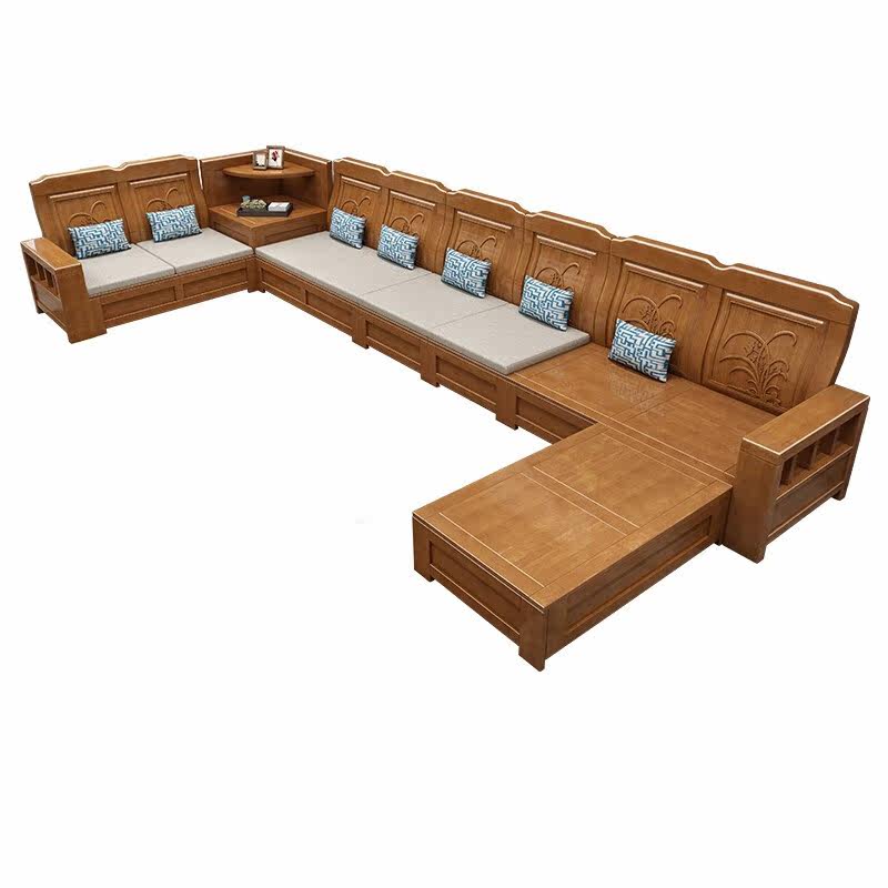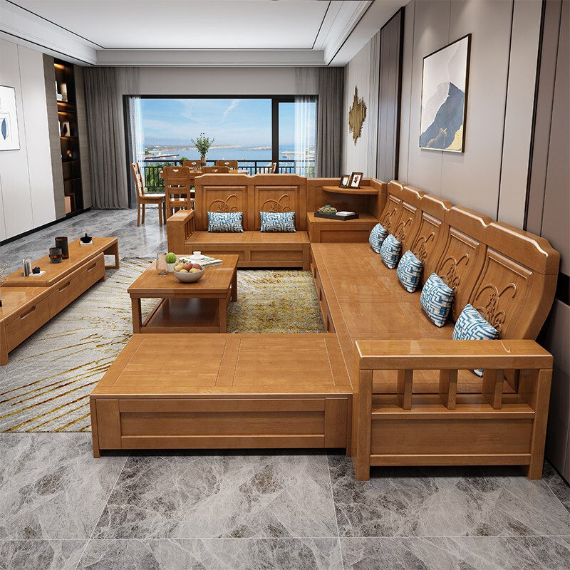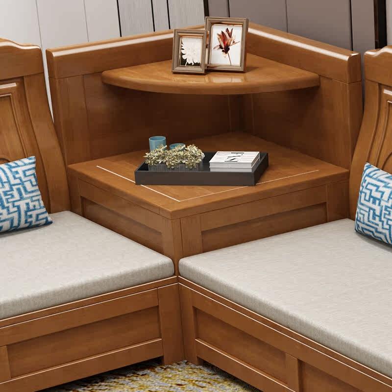 Solid wood sofa combination modern Chinese simple storage high box sofa small apartment corner wooden sofa living room furniture