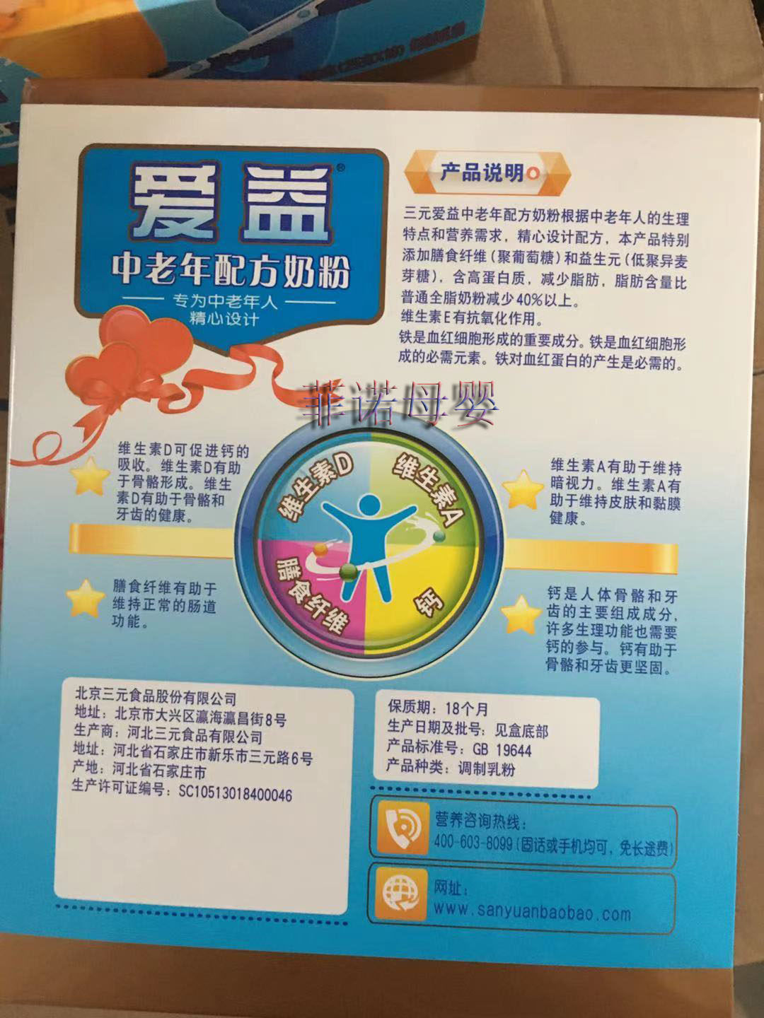 In January 22, it produced three-yuan milk powder three-yuan Aiyi middle-aged and elderly formula milk powder 400 grams in four boxes