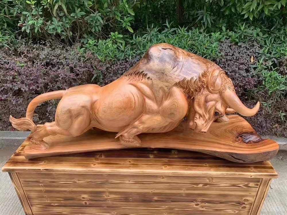 Fragrant Camphor Wood Carving Pendulum of Bull Gas Rinthong Turtle Wood Engraving Craft Gift Swaying home Decorative Flowers Pear Wood Cliff Bergen Sculpture
