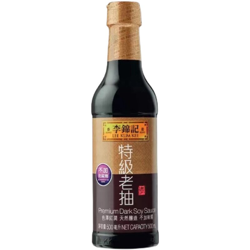 Hong Kong Li Jinkee Grade Old pumping 500ml bottle of natural brewing soy sauce on color red and green soy sauce fried with sauce
