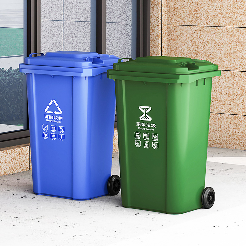 100 liters with wheel green kitchen waste (delivered door-to-door) 100 liters with wheel blue recyclable garbage (delivered door-to-door) 100 liters with wheel grey other garbage (delivered door-to-door) 10