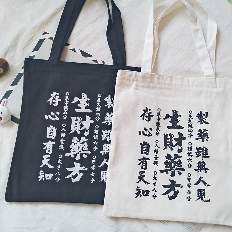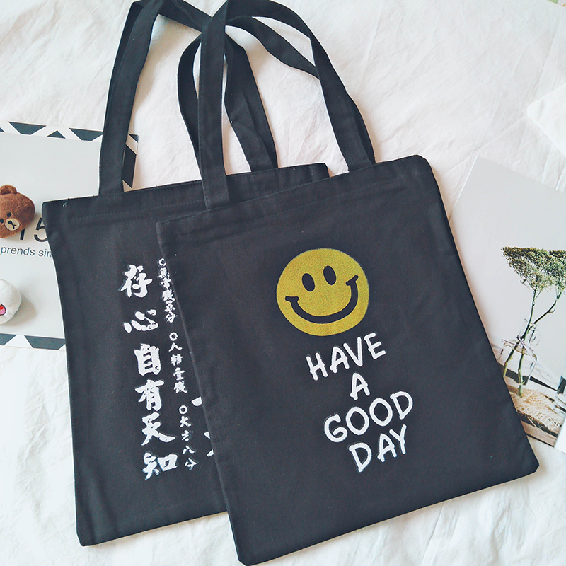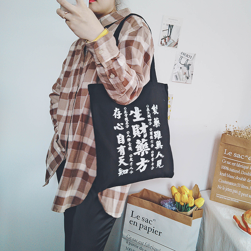 Korea ins casual wild canvas bag female zipper environmental protection shopping bag Simple letter portable shoulder bag bag