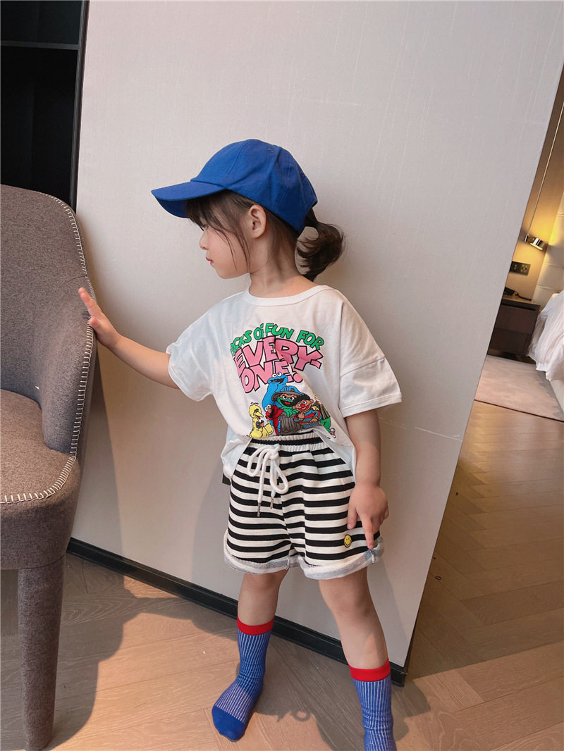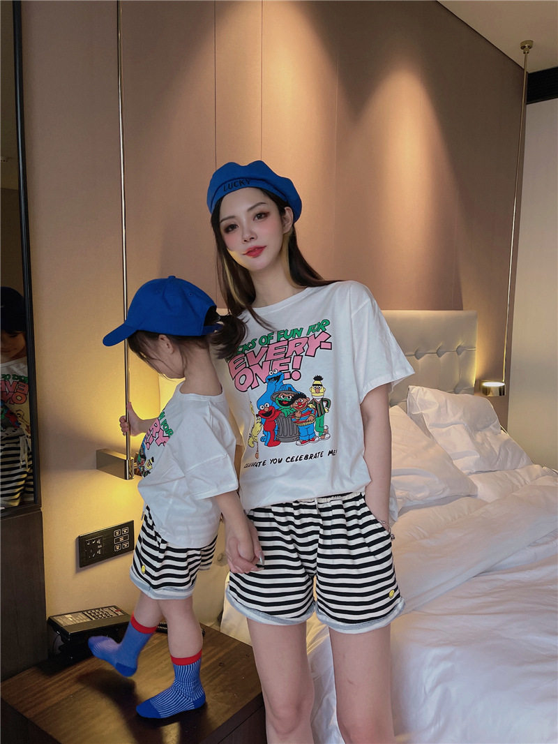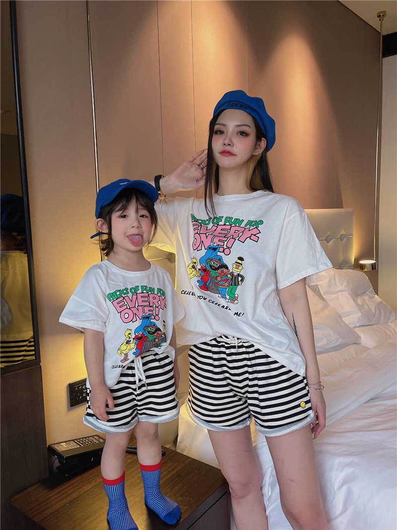 Special parent-child clothes fried street pure cotton short-sleeved 2021 summer Western style loose cartoon printed top mother and daughter trend