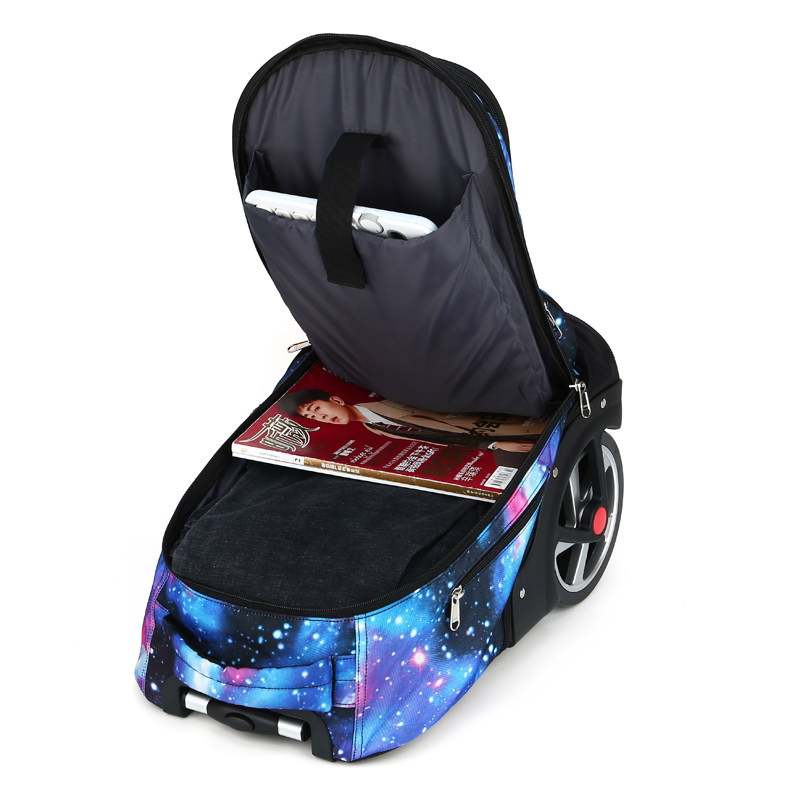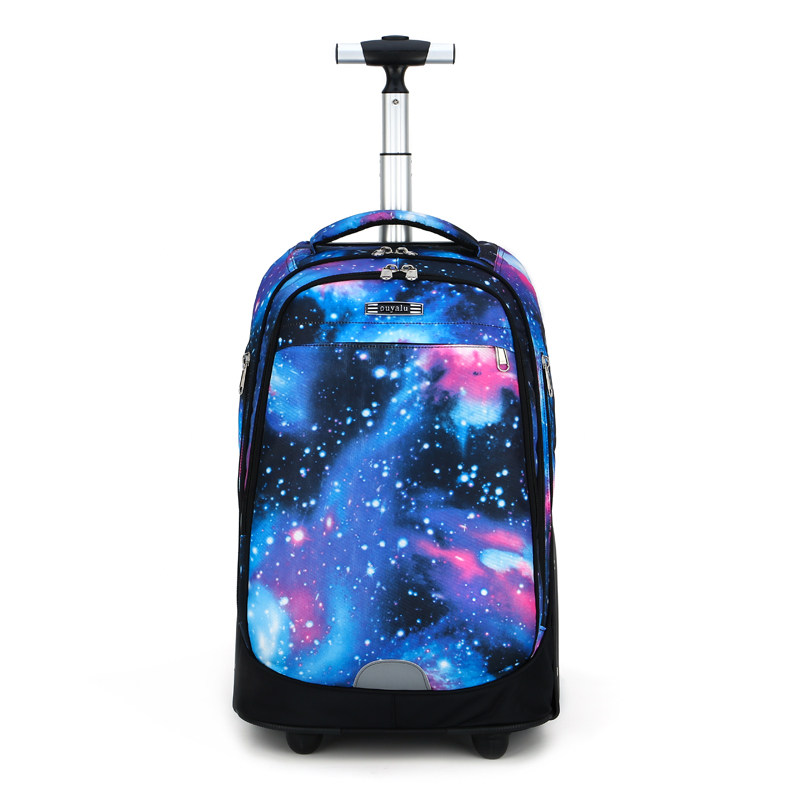 Junior high school students starry sky trolley school bag climbing stairs big wheel boy female mute large capacity waterproof shoulder bag