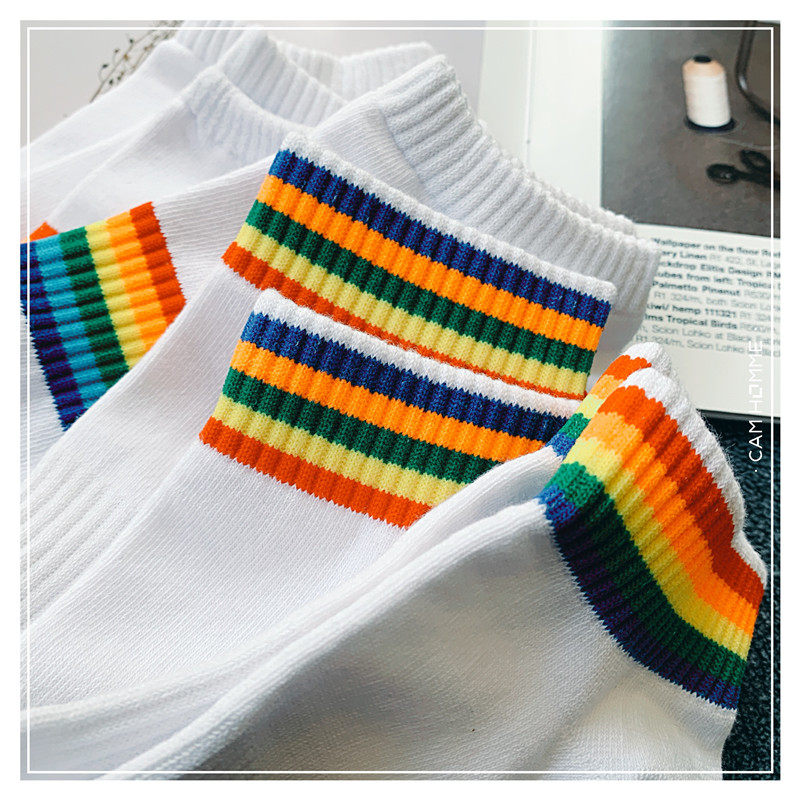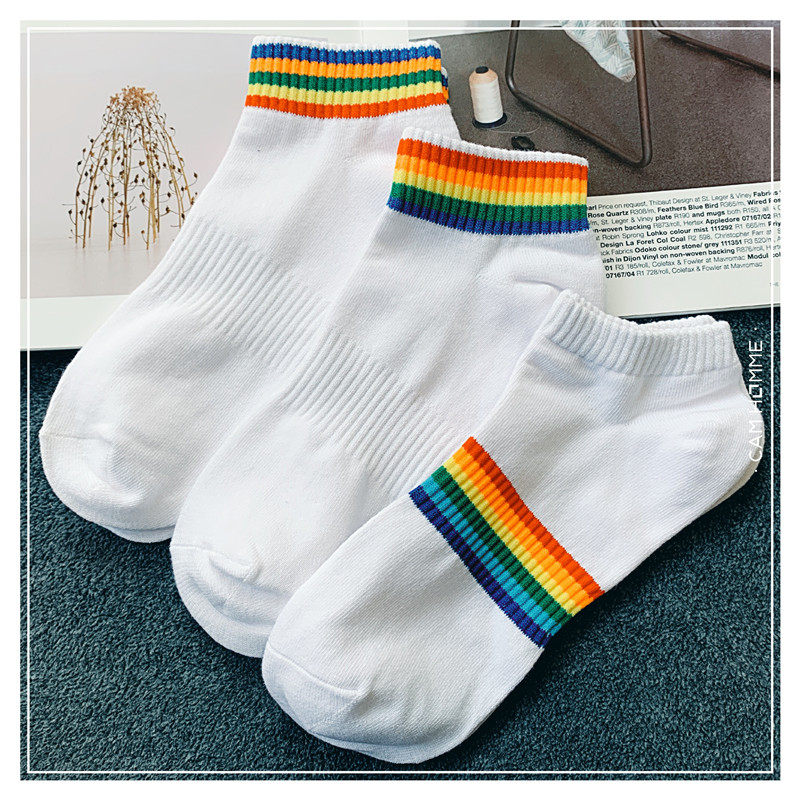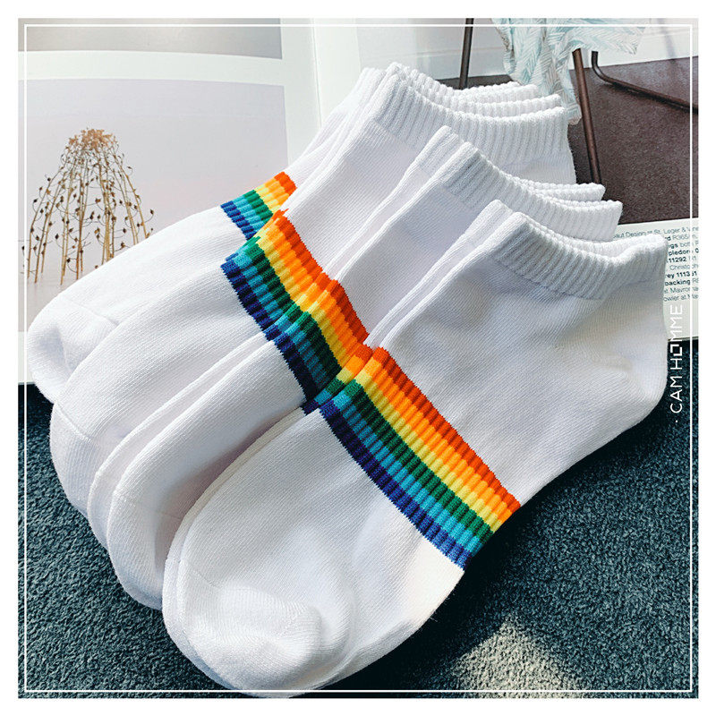5 pairs of rainbow boy summer striped sports invisible short socks pure cotton sweat-absorbing breathable low-top shallow mouth boat socks