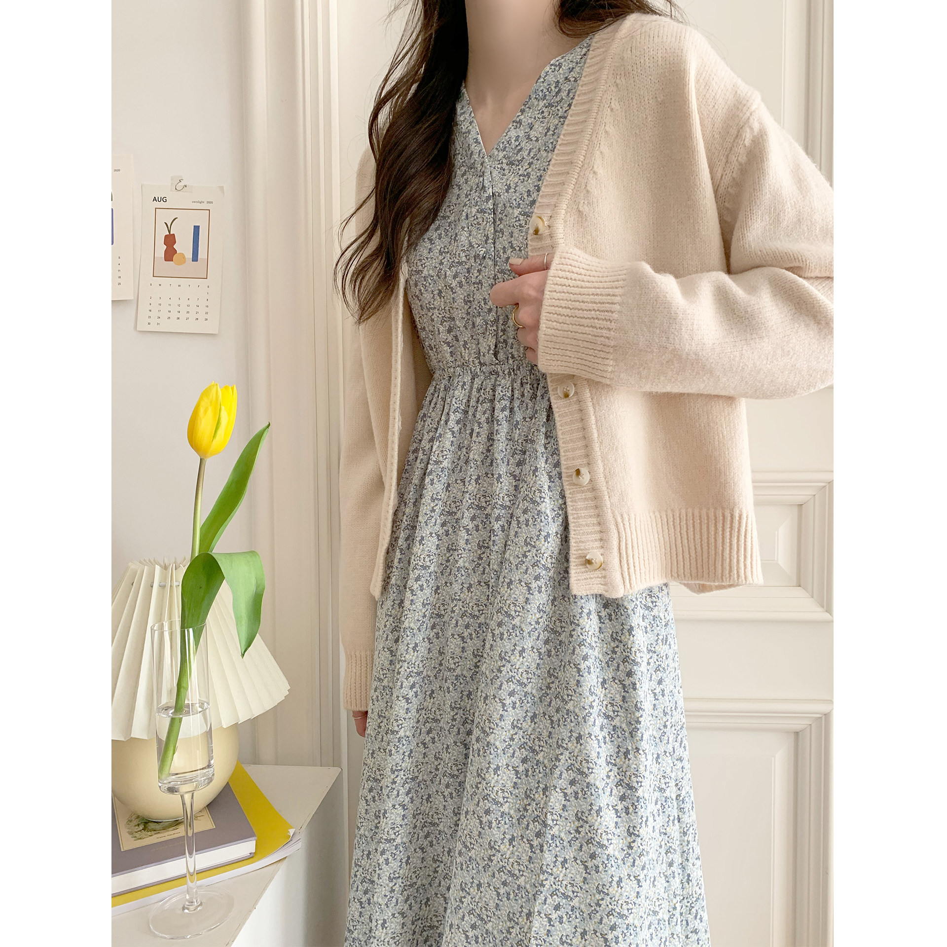 Buy three-free-one-flower-macho elastic waist design French style V collar dress woman little sub a word fragra dresses spring