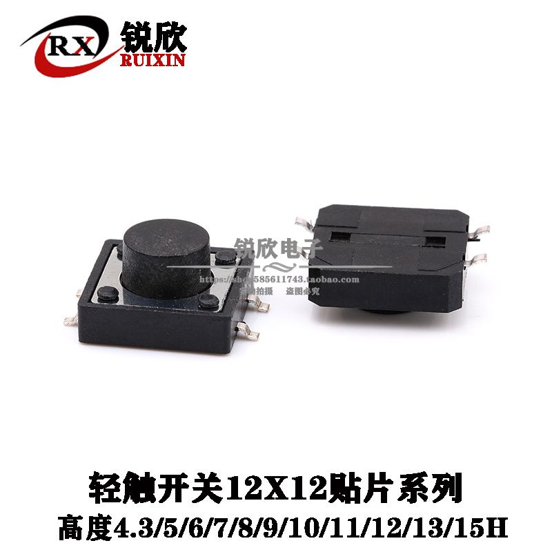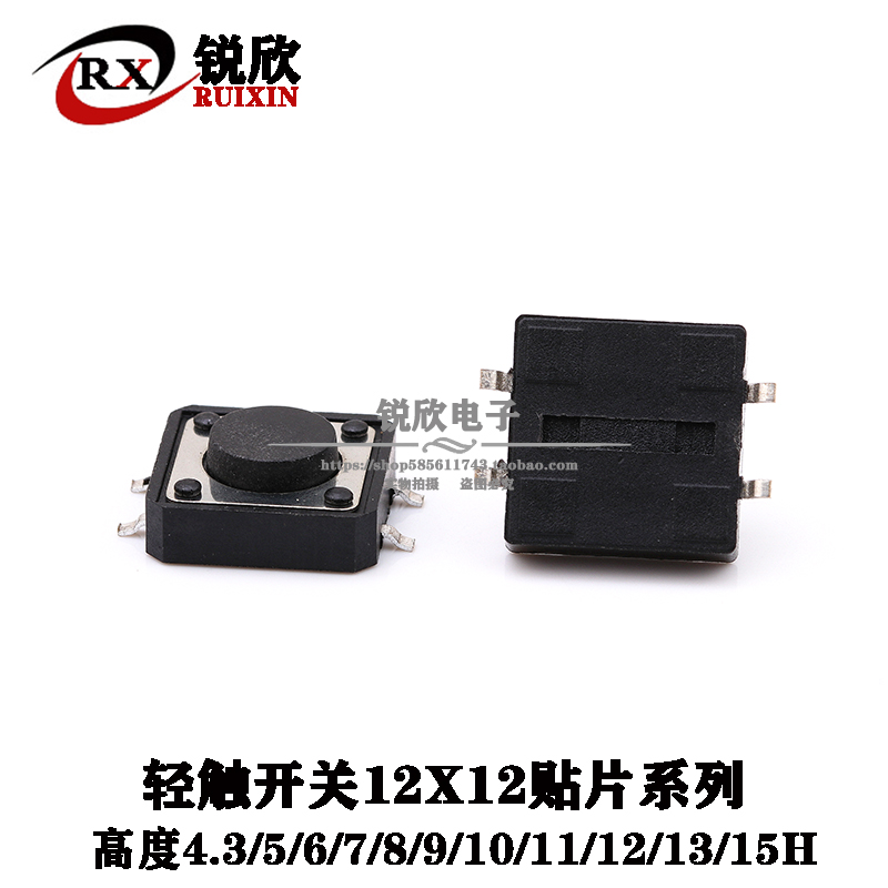 Tap switch 12*12 large button round head SMD4 foot patch 12X12X4 3 5 7 8 15 mmH micro