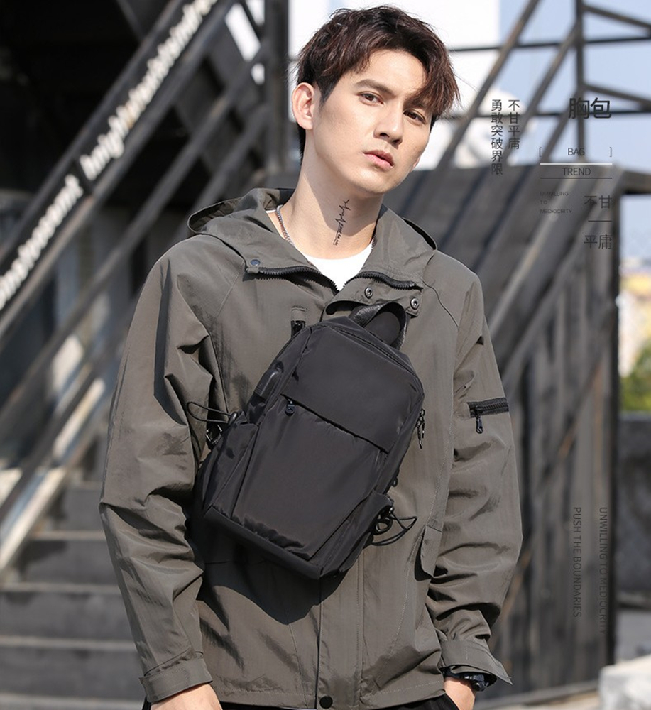 Hong Kong Casual Men's Chest Bag Single Shoulder Slanted Satchel multifunction Chauded Scapes Bag bag Tide Postman Bag Men Bag