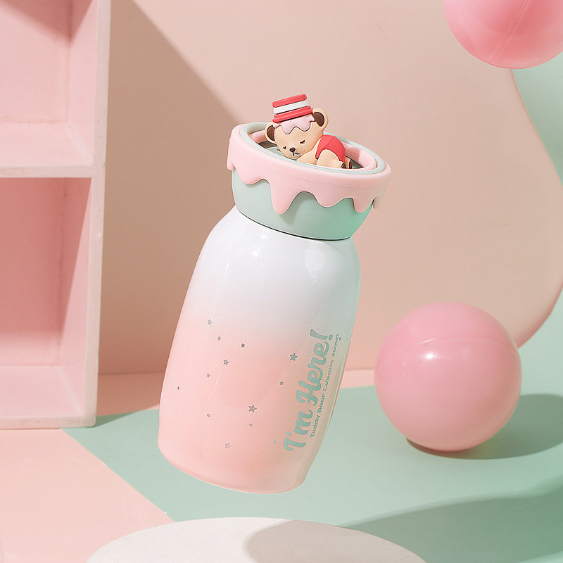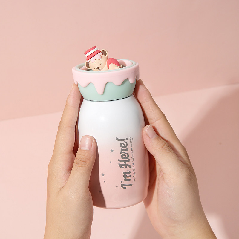 sohome teddy bear collection stainless steel Three-dimensional doll Thermos mug double insulation portable portable water Cup