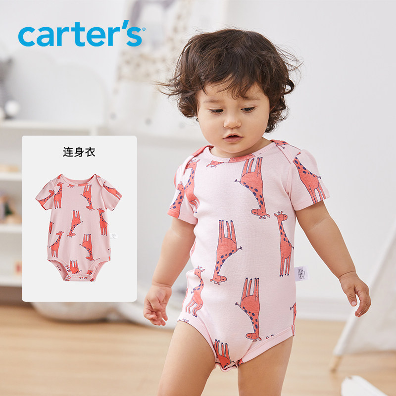 Carters short-sleeved jumpsuit female baby 2022 summer clothes newborn baby triangle bag fart romper