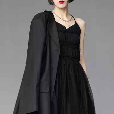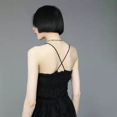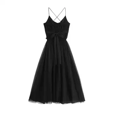 2021 summer new Joker skinny black suspender skirt base skirt strap mesh gown dress long dress women