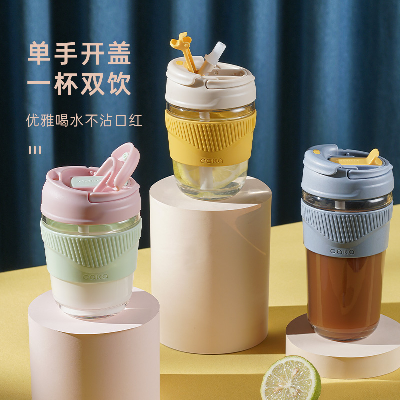 CAKA tea card glass cup female water cup portable with straw milk tea cup bubble mesh red and cute double drink coffee cup submale