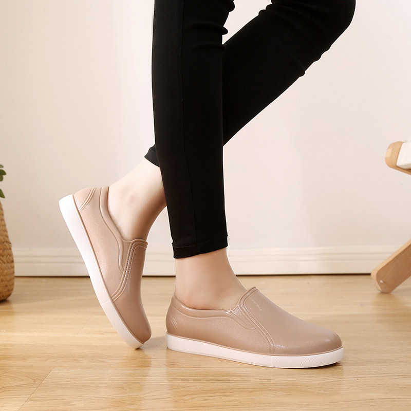Fashion Light Mouth Rain Shoes Women Non-slip Low Helps Thick Base Rain Boots Waterproof Shoes Kitchen Abrasion Resistant Working Rubber Shoes Korean Version Water Boots