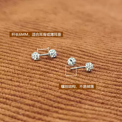 Fine needle small ear needle cartilage double head earrings Europe and America 2021 New Tide rhinestone ear bone screw screw buckle