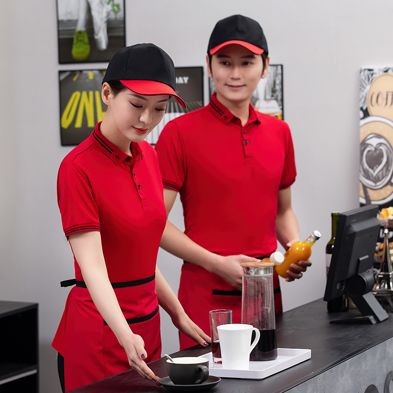Fresh supermarket store waiter work clothes female fruit dessert burger milk tea shop short-sleeved T-shirt custom pattern