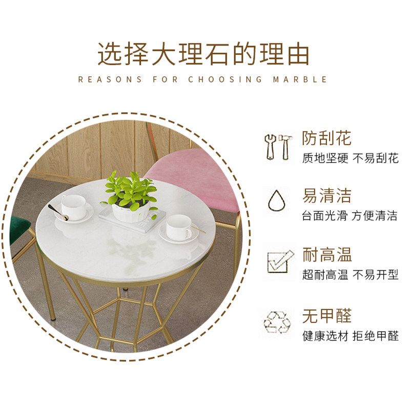 Nordic Modern Light Lavish Marble Balcony Tea Table Innet Red Milk Tea Sweet Shop Casual Small Round Table and chairs Composition