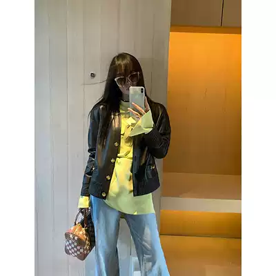 Fu Zhien Hui Night Meteor Imported Leather Leather Clothes Women Short Edition Cardigan Coat Leather Leather Jacket 2021 Spring and Autumn New