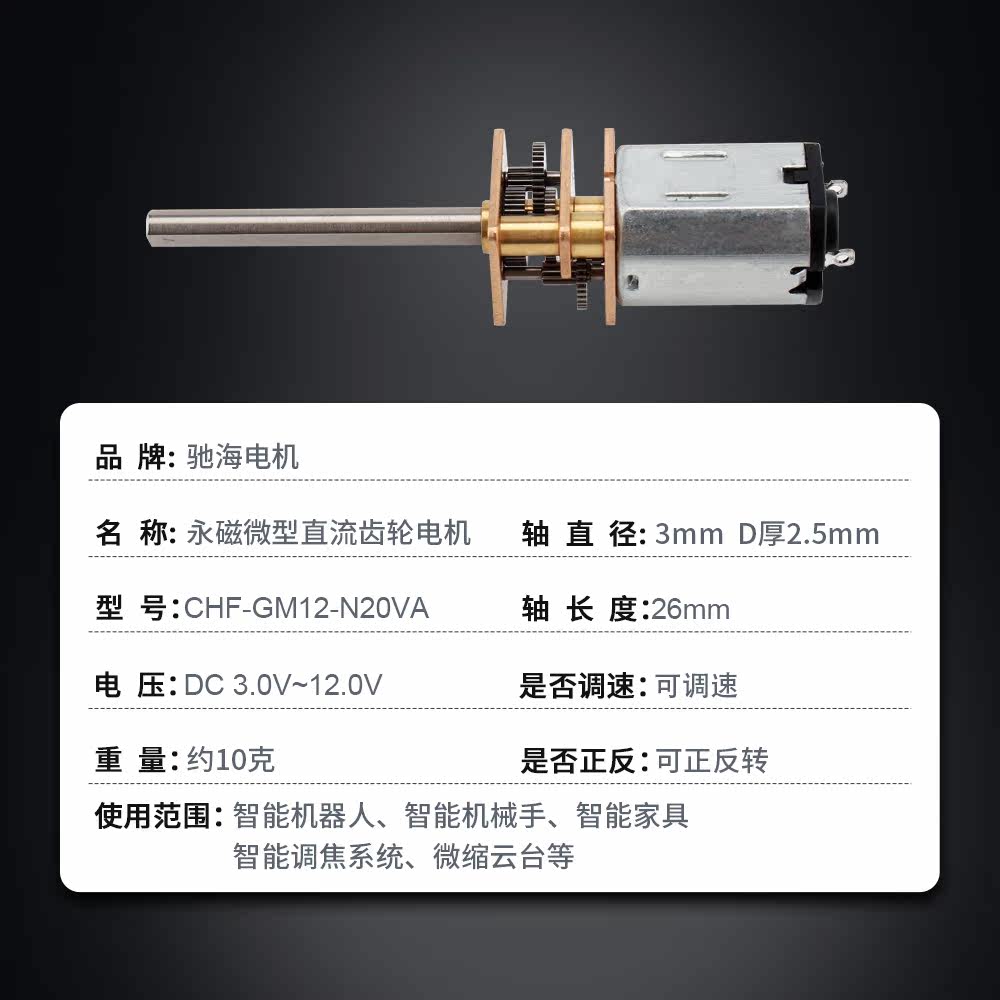 Factory direct GM12N20 DC gear motor intelligent trolley D-axis length 26mm metal gear motor