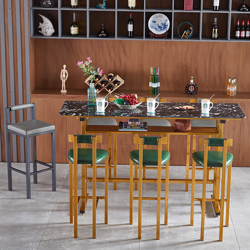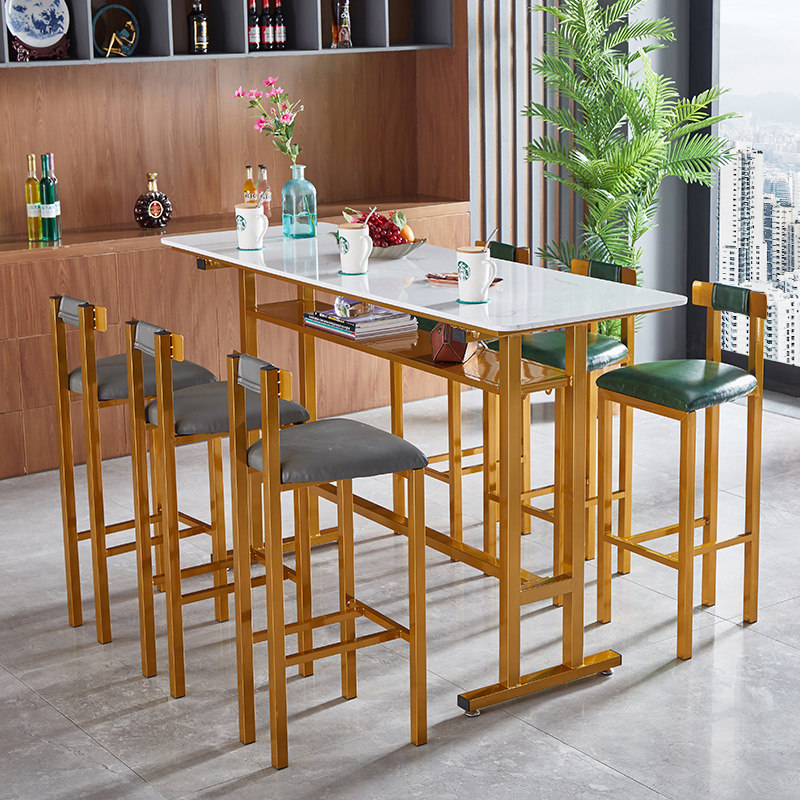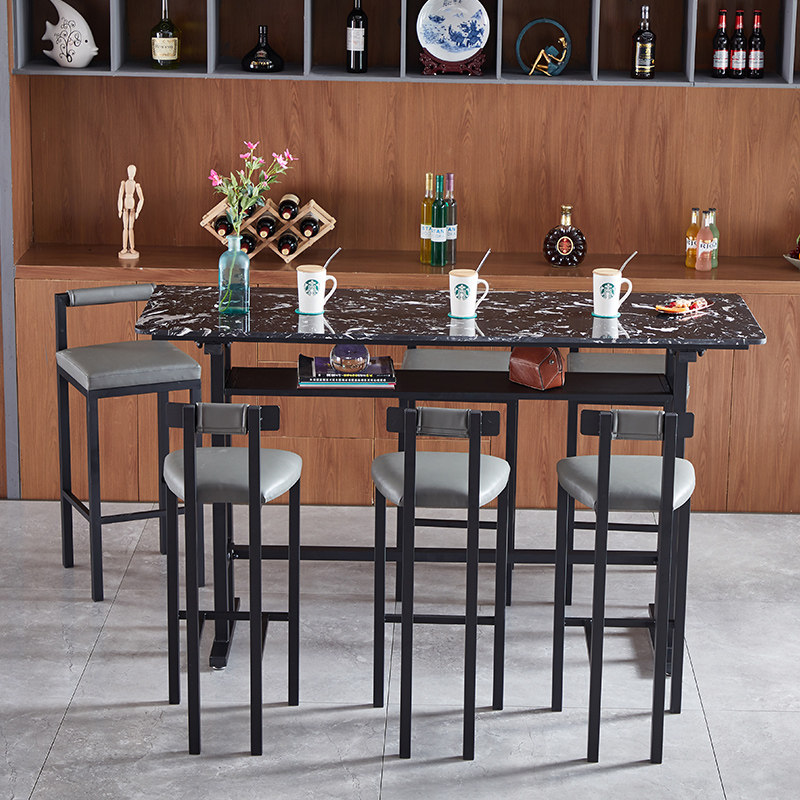 Nordic Marble Bar Table Close By Wall Home Iron Art Strip Table Close By Window Balcony Milk Tea Shop High Foot Table And Chairs Combination