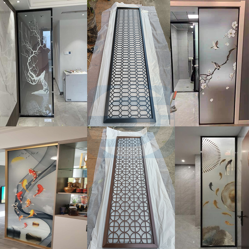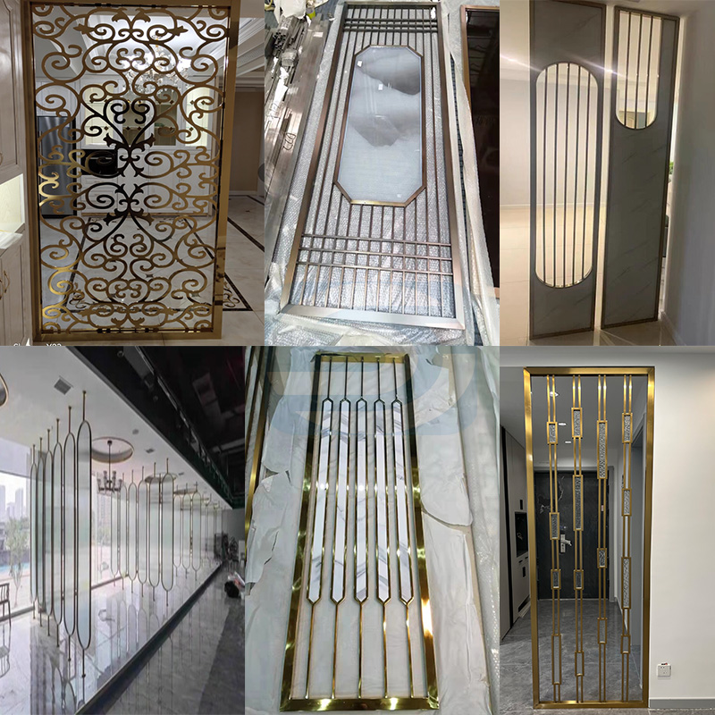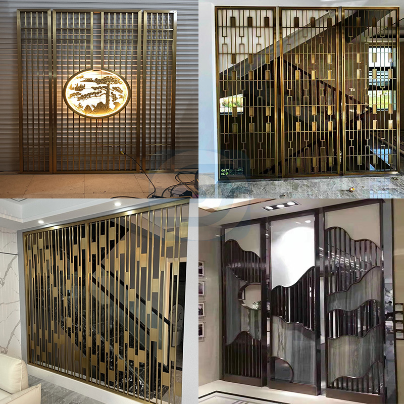 Light Extravagant Stainless Steel Hollowed-out Carved Flower Screen Modern Metal Decorative Partition Customised New Chinese Hotel Genguan Flowers