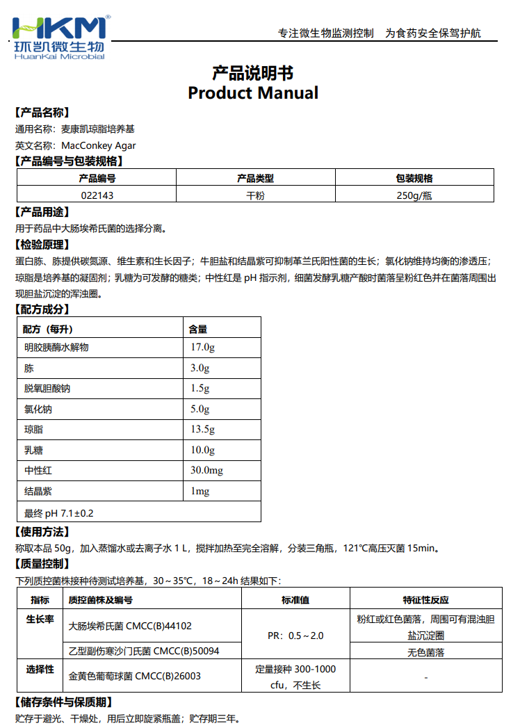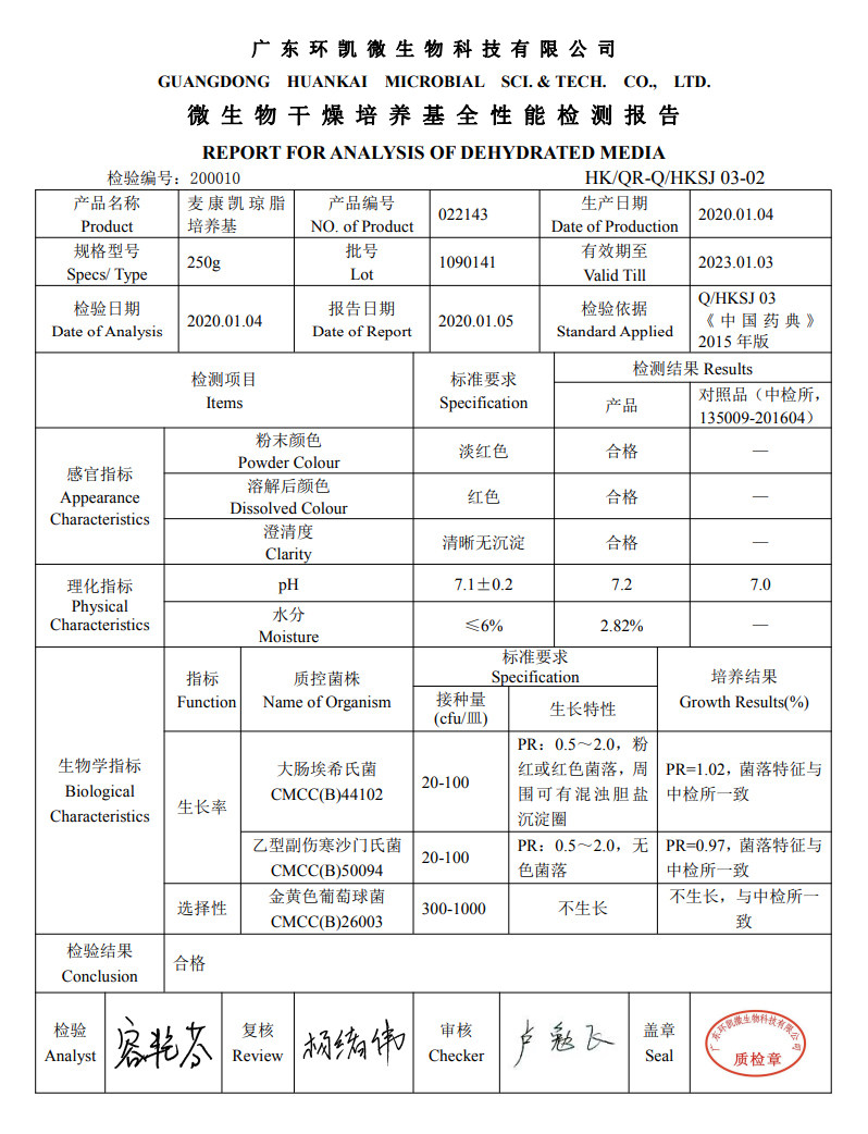 MacConkey agar medium for isolation and culture of Escherichia coli, Guangdong Huankai 022143