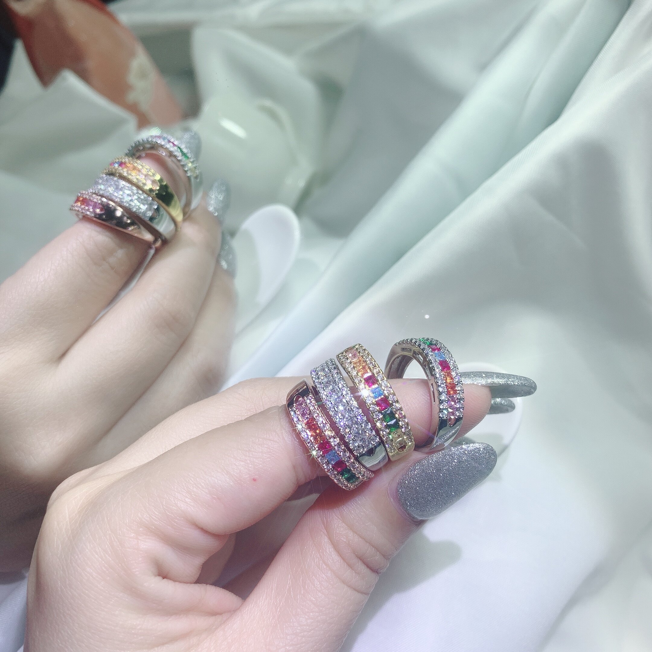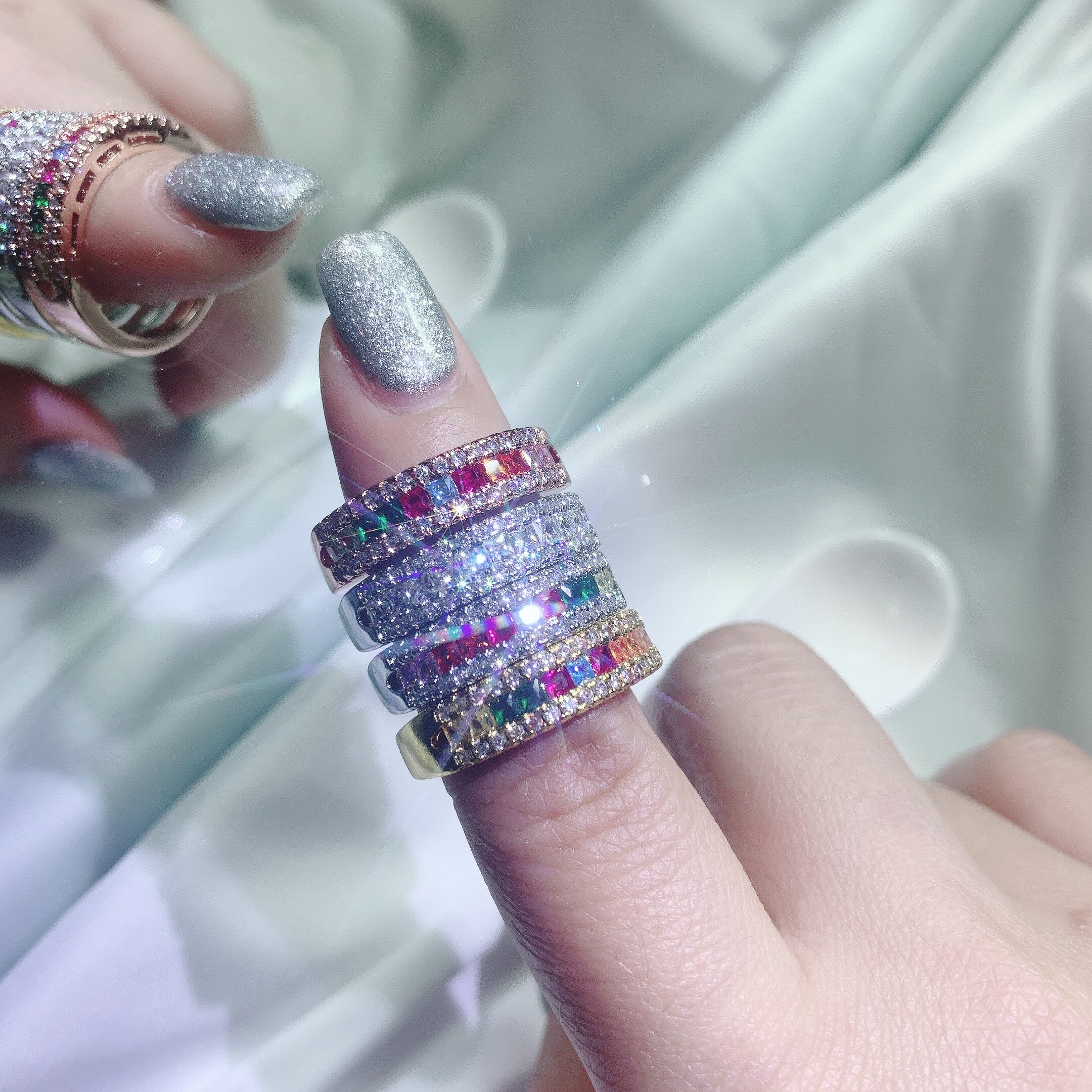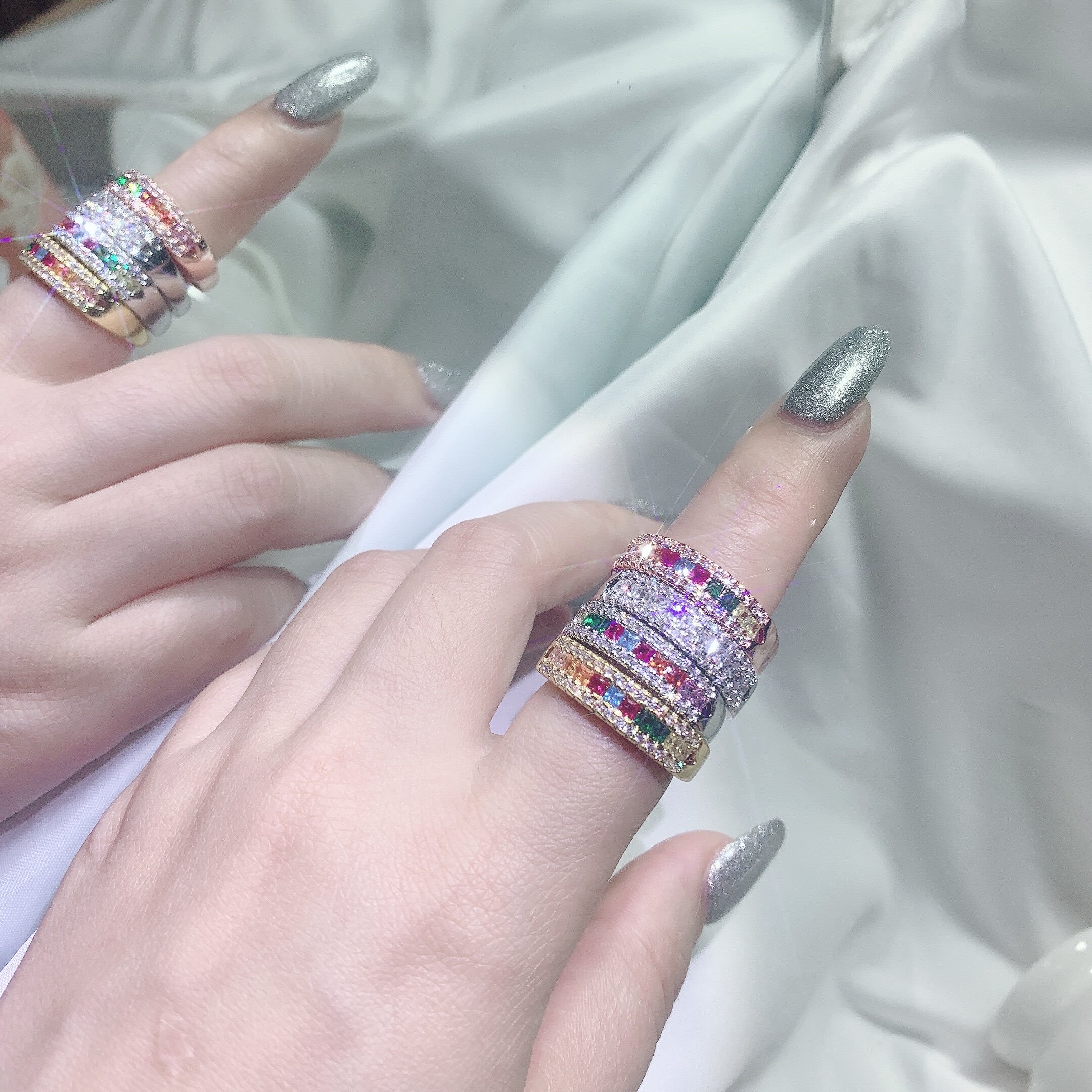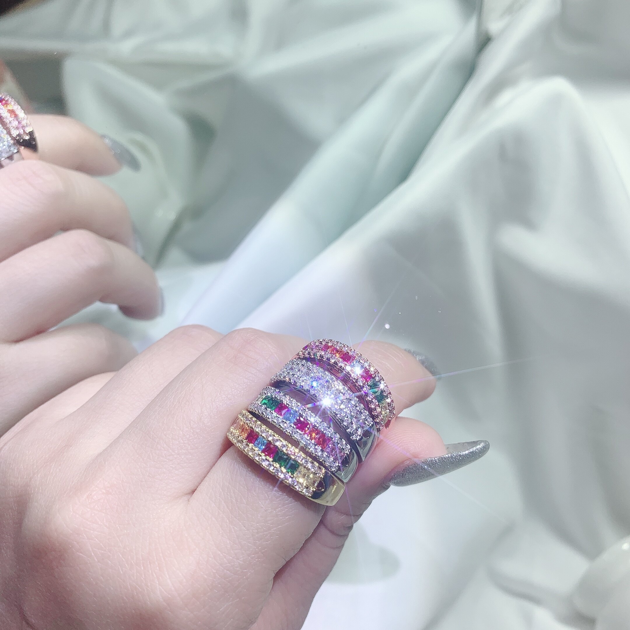 Marry Rainbow Light Luxury Plated 18K Goddess Value Rainbow Sapphire Gradual Simulation Diamond Ring Ring Ring Ring Ring Ring Ring