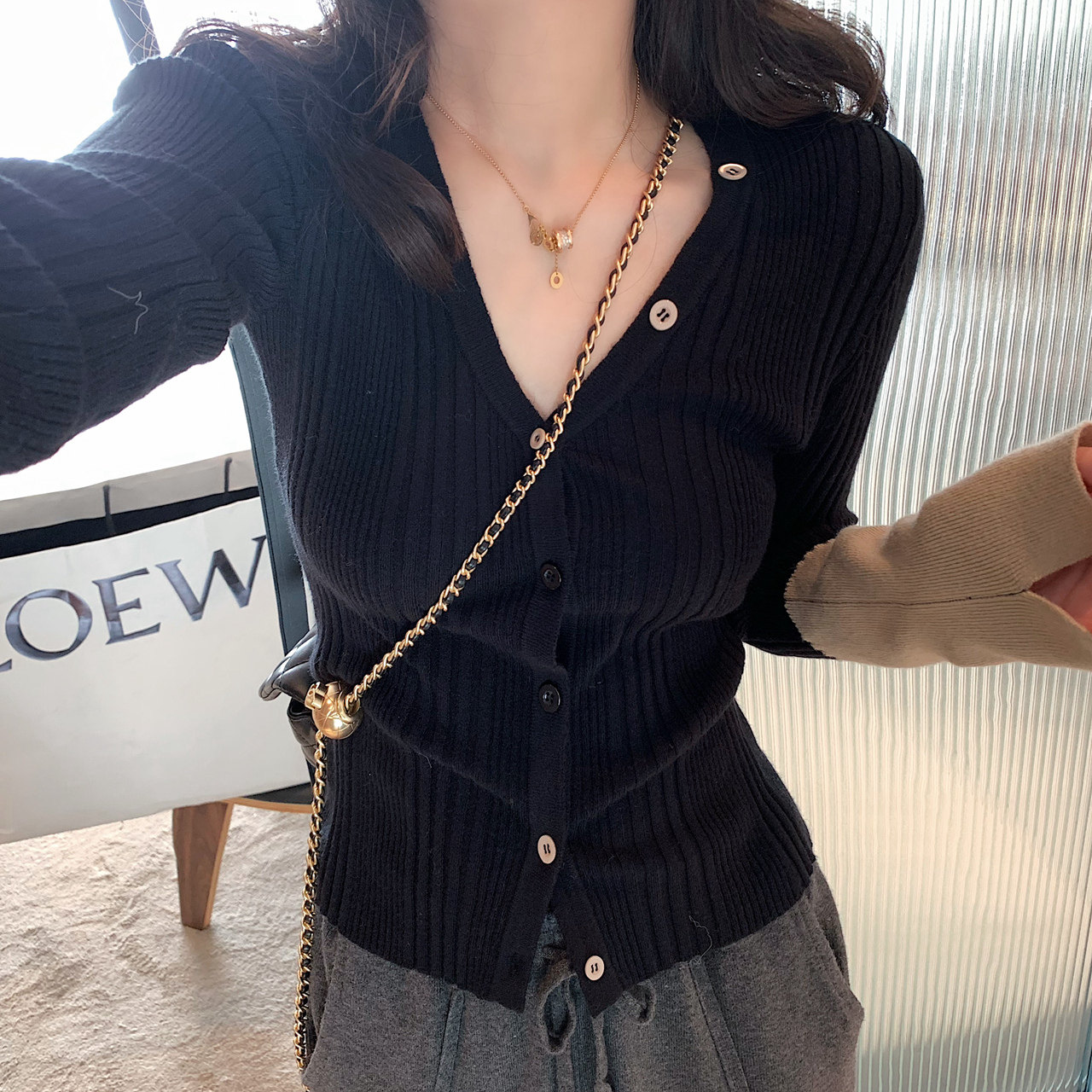 Hong Kong counter 2021 Spring and Autumn New Gentle wind V collar color color knit cardigan knitted cardigan long sleeve knitted top