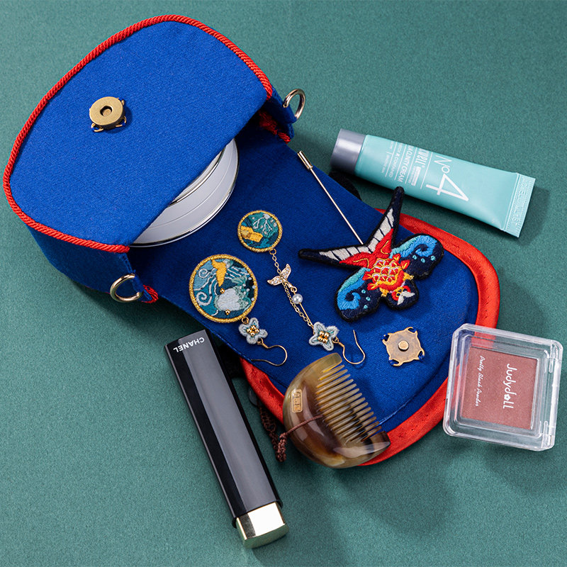 King's hand-created embroidery DIY material bag handmade self-embroidered mouth gold bag mini small shoulder bag saddle bag cat open shipping