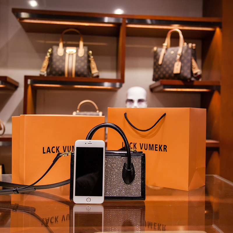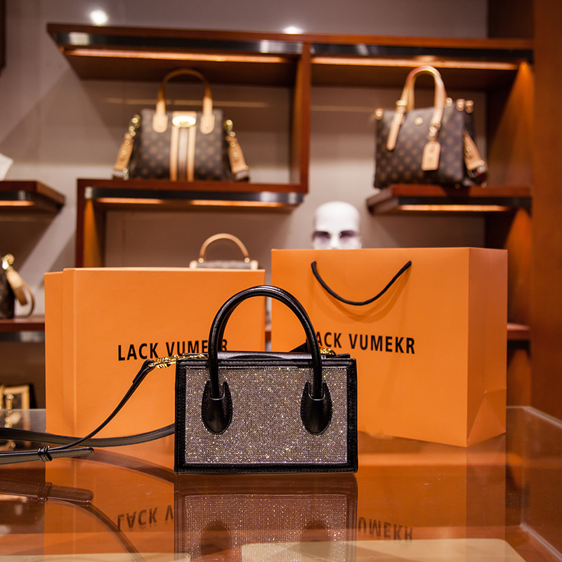 Hong Kong LACKVUMEKR genuine leather water drill small square bag bag woman 2021 new wave inlaid drill hand bag inclined satchel bag